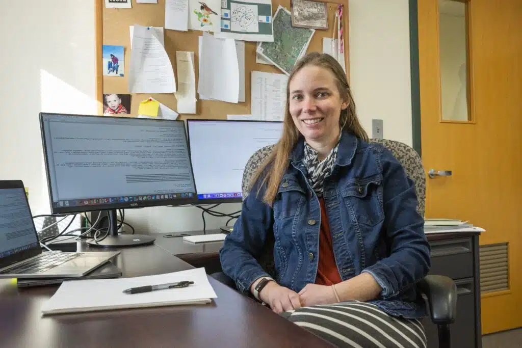 Dr. Sarah Carrino-Kyker studies the microbial communities living in forest soils and how environmental changes affect the tiny organisms. “I love getting to use DNA sequencing to study soil fungi!” she says. “It gives us a window to see these important organisms below ground, even if we don’t see any mushrooms or sporocarps aboveground.”
