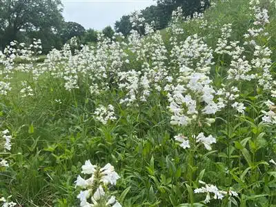 This week, I was particularly drawn to several plants in and around the Eliot and Linda Paine Rhododendron Discovery Garden. On the walk there, you can’t miss the swath of foxglove beardtongue (Penstemon digitalis) blooming in the streamside meadow along the Norweb Tree Allee.
