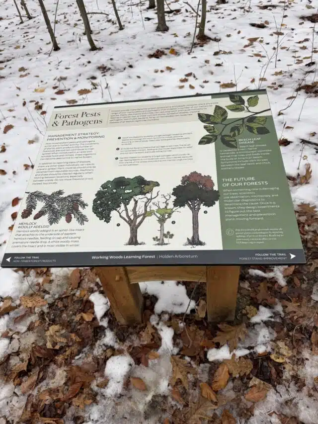 And to reach woodland owners, there’s a new sign, just installed last week, about forest pests and pathogens in the Working Woods Learning Forest at the Arboretum. Over 80% of Ohio’s forest land is privately owned, which means woodland owners have a unique opportunity to make a real difference in monitoring and slowing the spread of these pests.