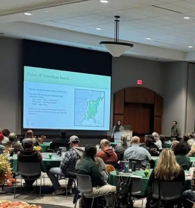 Hollowell, Dlugos, and their colleagues have also been busy these past few months spreading their message through in-person and virtual presentations. This September and October, Hollowell and Dlugos presented at the Woodland Cemetery & Arboretum in Dayton, OH, at a meeting of the Civic Garden Center of Greater Cincinnati, and at the Woody Plants & Landscape Symposium in Burlington, KY. Hollowell and research specialist Brianna Shepherd presented to staff at the Knoxville Botanical Garden & Arboretum,