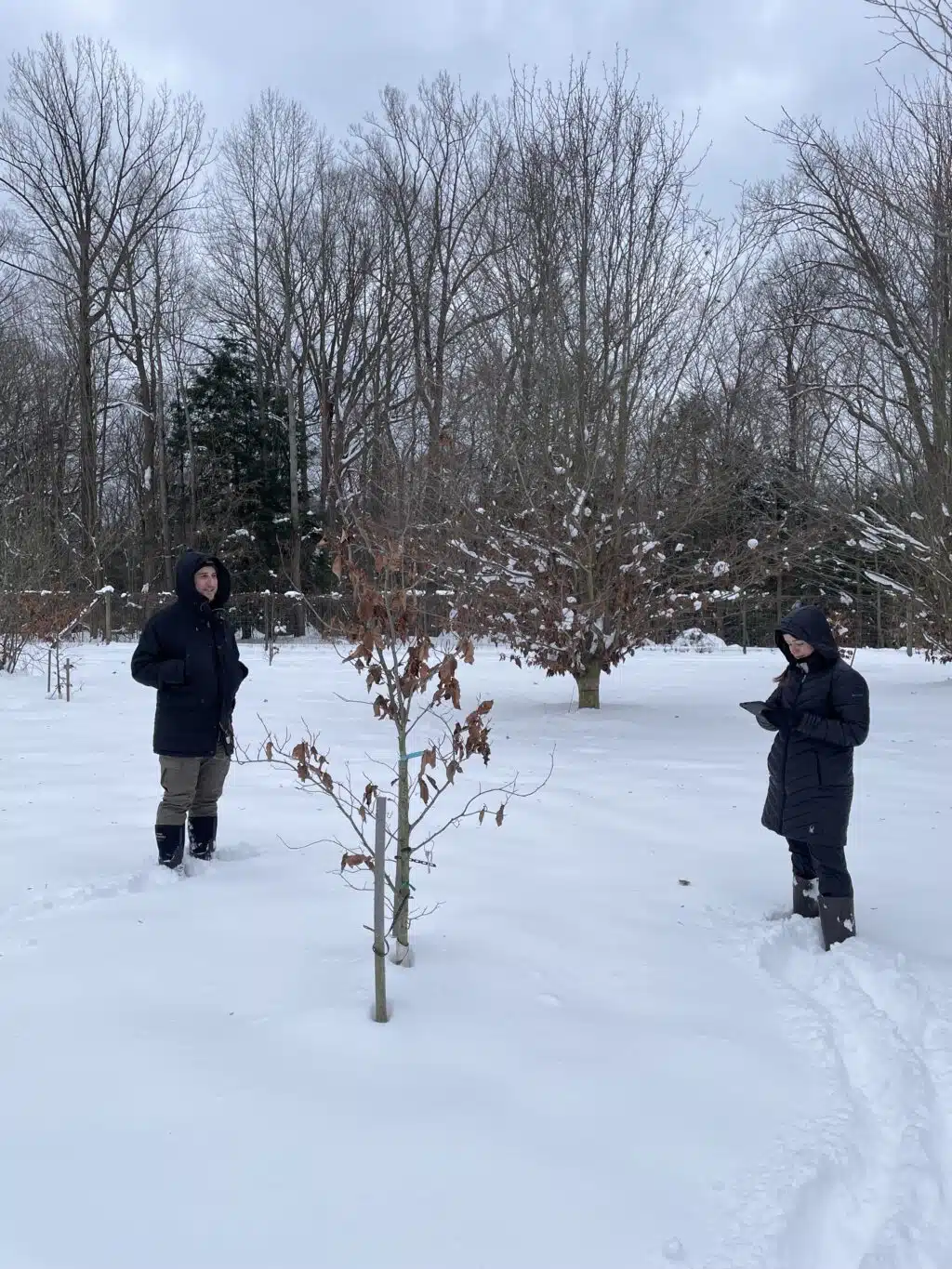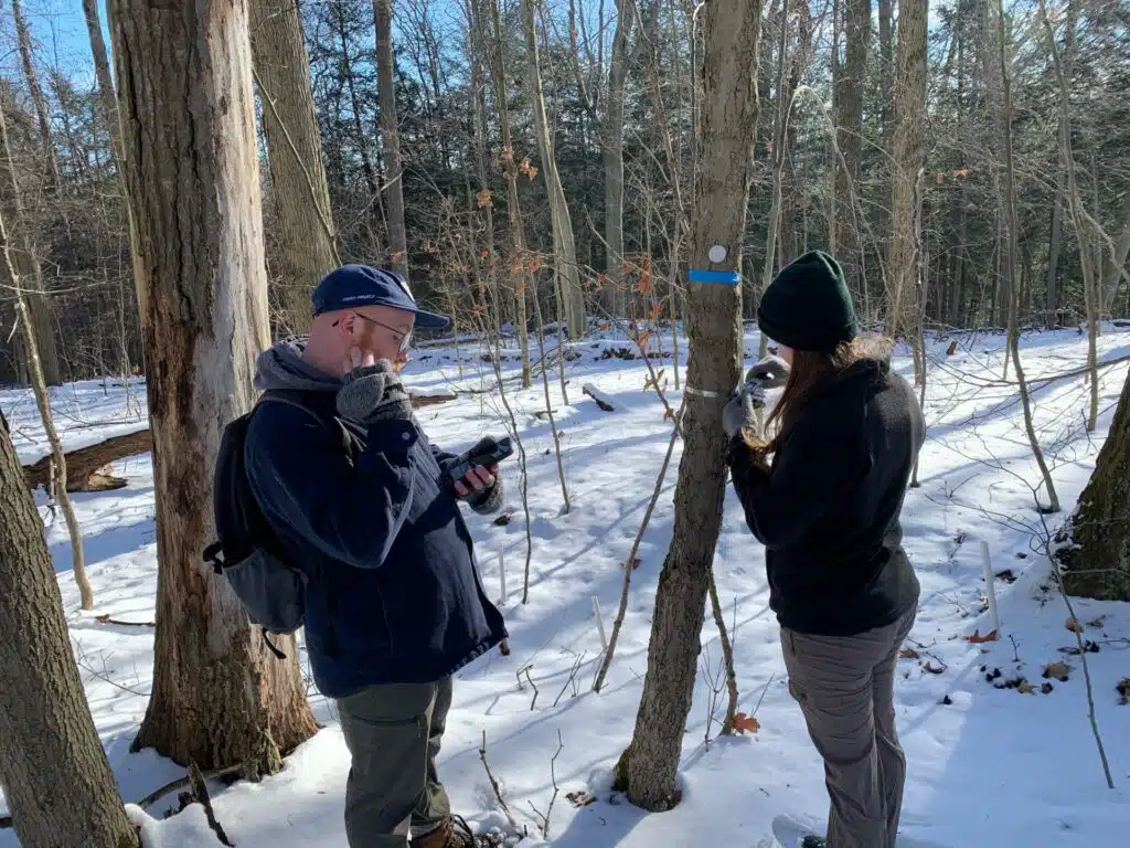 Winter is also a great time to measure tree growth. Shepherd and her colleague, David Jenkins, research specialist in the Stuble lab, measure the growth of certain trees in the Working Woods Learning Forest twice each year, including once per winter.