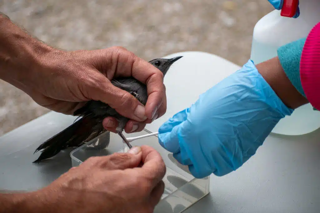 “As animals move through their landscapes, they can move microorganisms, including pests and pathogens, with them,” Watson explains. By netting birds across all seasons — including some very cold winter sessions — researchers are building a picture of who is hitching a ride on birds’ legs, and how this changes with the seasons.