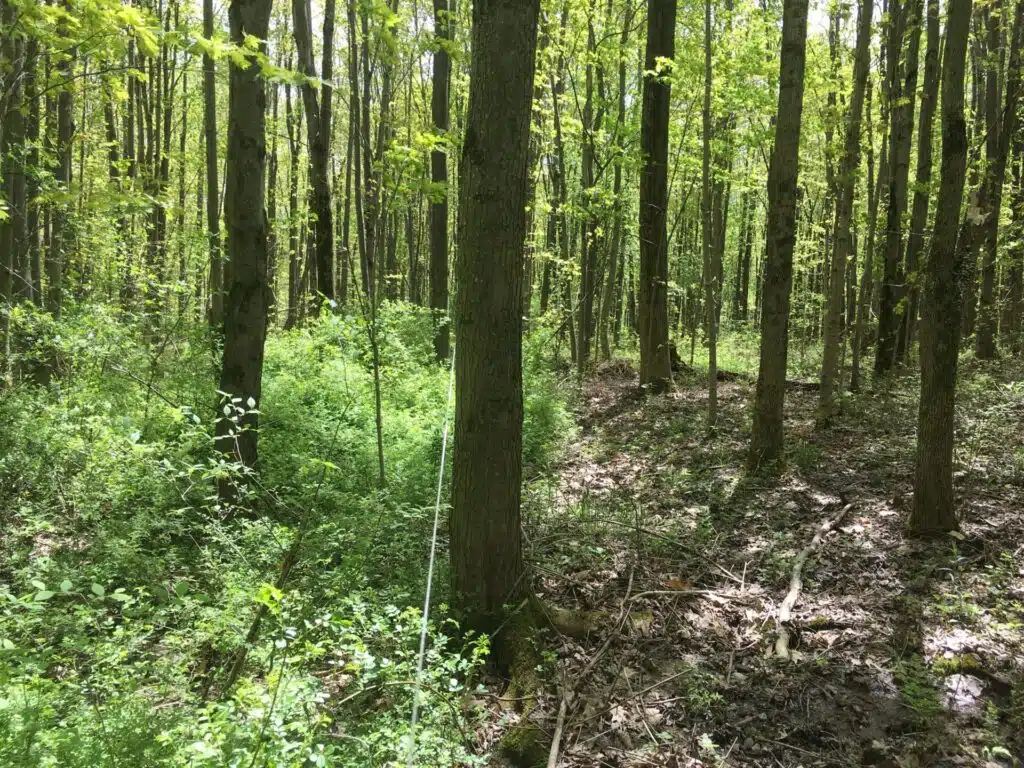 Here in northeastern Ohio, many forests are young, growing on land that was clear-cut and used for agriculture before being left fallow to eventually return to woodland. These tend to be even-aged stands dominated by the few species that first colonized the fallow field decades prior. Biodiversity is low, as is structural complexity, and the understory is typically thick with non-native invasive shrubs.