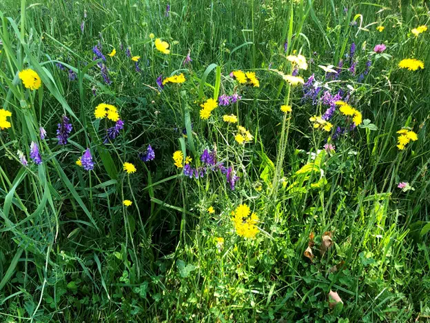Wildflower blooms host many bees and butterflies.
