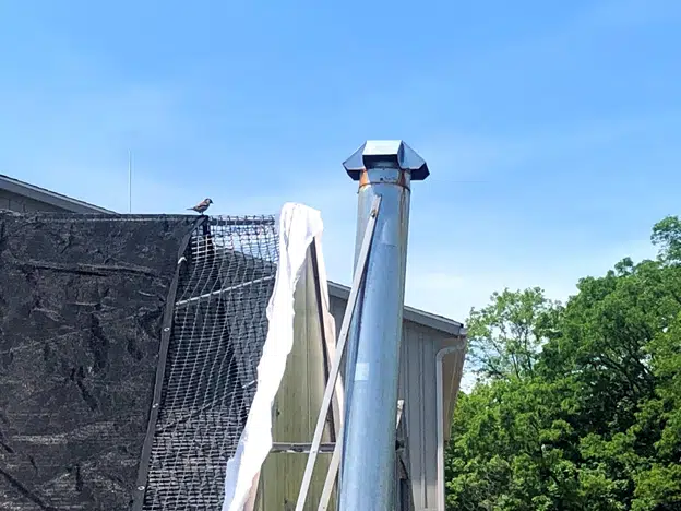 The house sparrows have set up shop in the chimneys of the polytunnel furnaces.