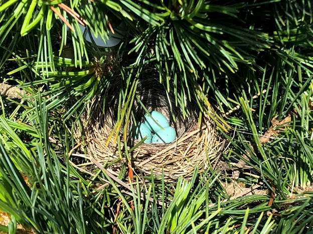 The tree container area. The tree container area has proven to be surprisingly good habitat for bird nests. Apparently the birds like this mini “forest!”