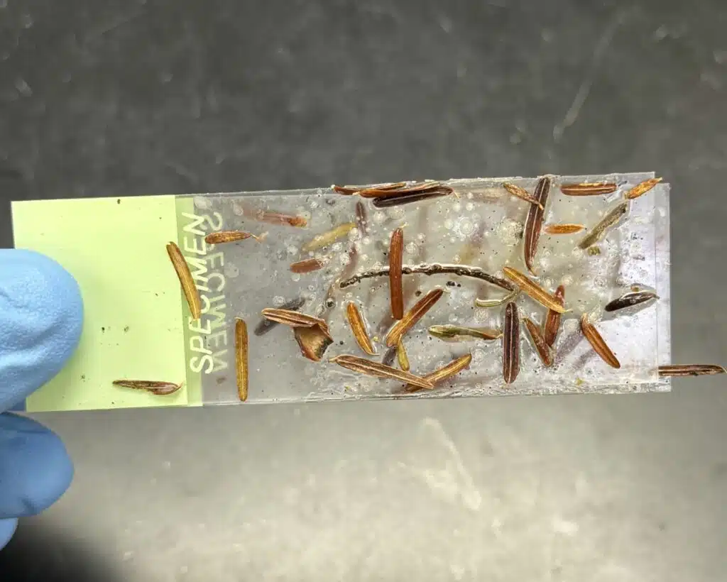The disk itself can stay installed, and researchers can swap out the slides to check their samples. Back at the Arboretum’s Long Science Center, researchers can extract the eDNA from the jelly, looking for a match with the DNA of species of interest, like the nematode that causes beech leaf disease, hemlock woolly adelgid, or even spotted lanternfly.
